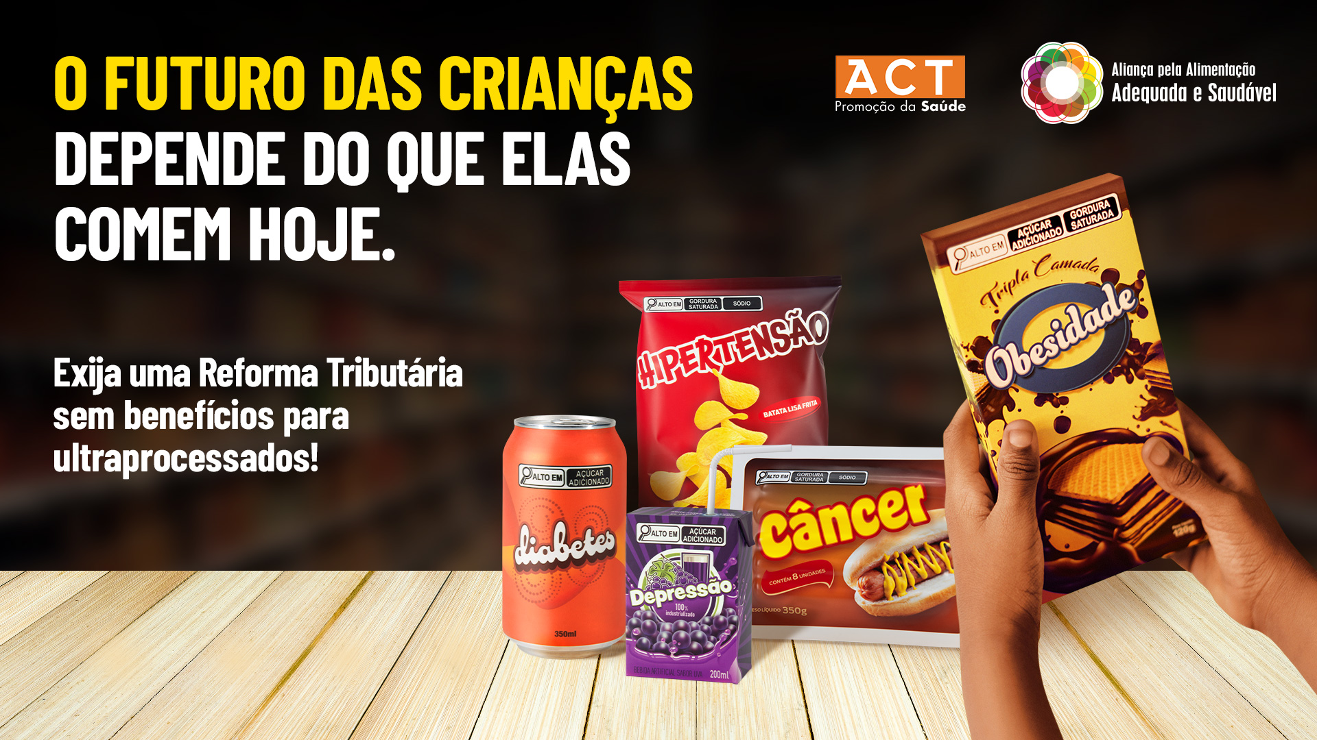 Criação de campanhas que promovem políticas públicas focadas na saúde da população. Em 2023 e 2024, foram 3 fases de uma mobilização que alcançaram importantes vitórias a cada etapa de votações para a regulamentação da Reforma Tributária.